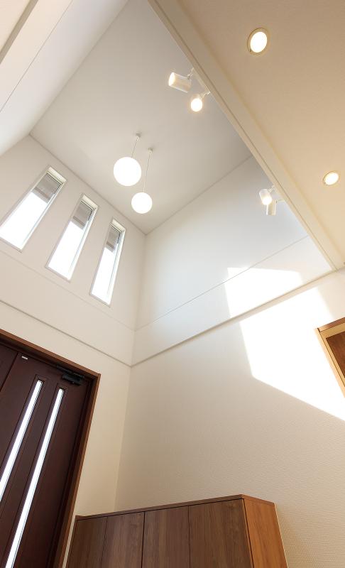 玄関を入れば、吹き抜けからの明るい光がお客様をお迎えします。